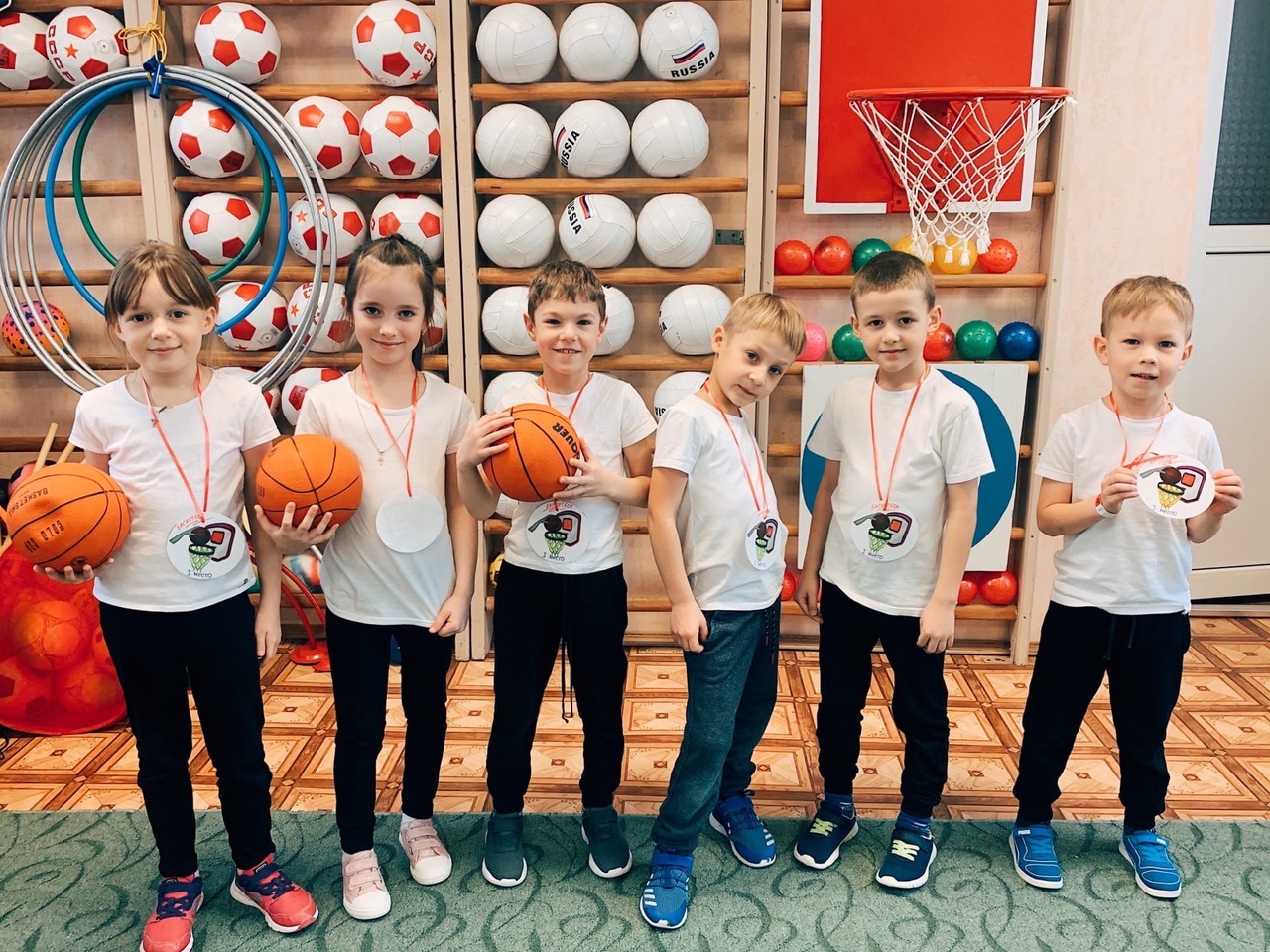 Дети подготовительной группы играют в волейбол