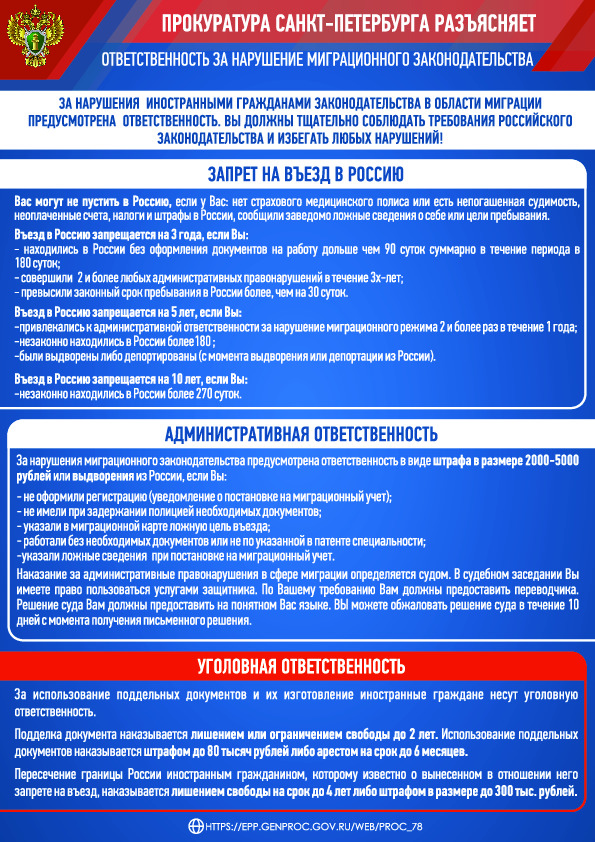 Прокуратура СПб разъясняет: Ответственность за нарушение миграционного законодательства