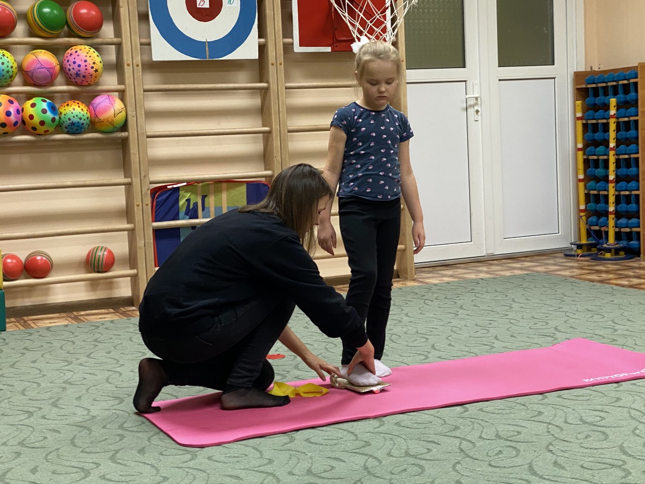 Инструктор по физической культуре Ильина Екатерина Сергеевна рассказала о теоретических основах здоровья стоп, показала разницу варуса и вальгуса и их коррекции.