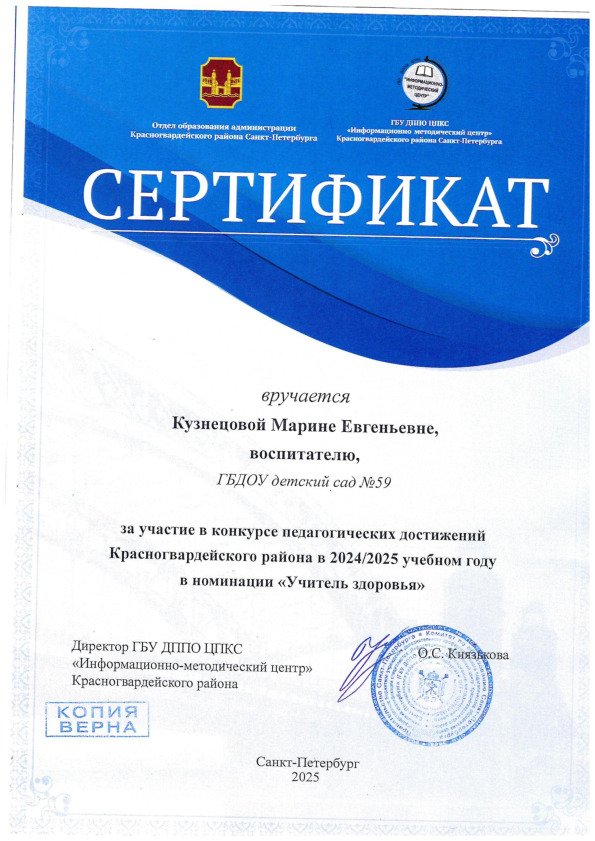 ГБДОУ ДЕТСКИЙ САД № 59 КРАСНОГВАРДЕЙСКОГО РАЙОНА САНКТ-ПЕТЕРБУРГА